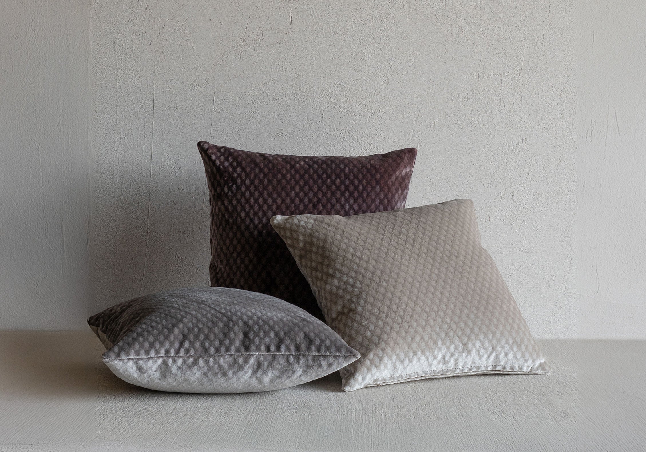 A collection of artisanal velvet cushions woven with movement, rhythm, and color. Designed to soften modern interiors with character and texture.